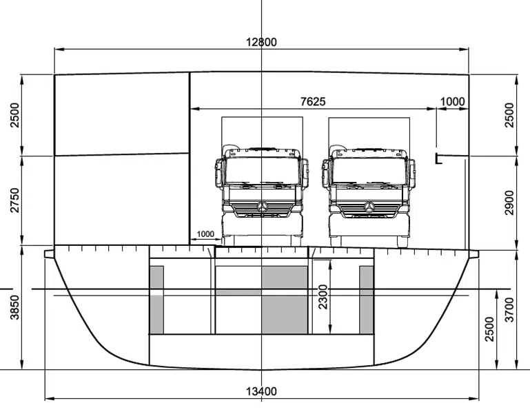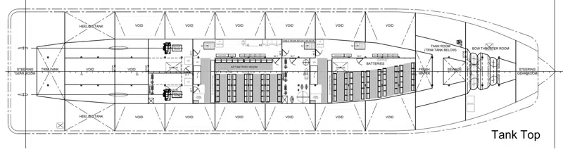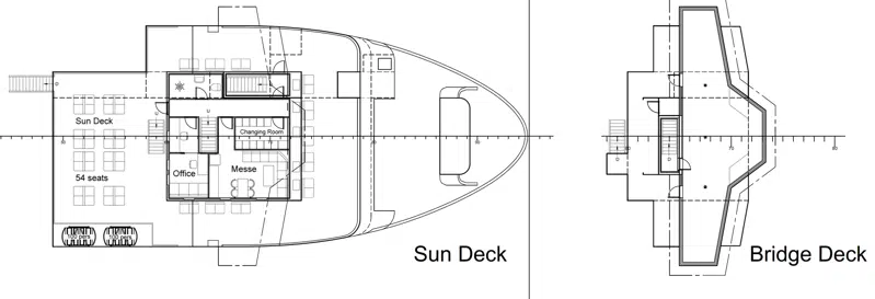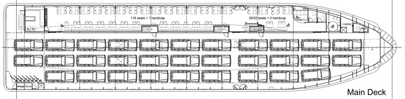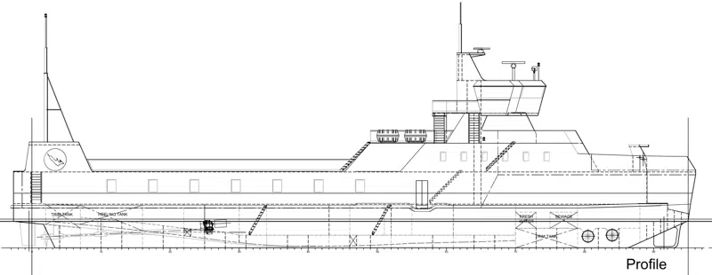 Herunder kan ses 2D skitser af el-færgen, udfærdiget af Rådgivende Skibsingeniører Jens Kristensen ApS.