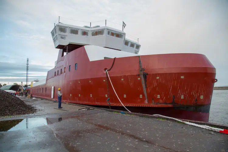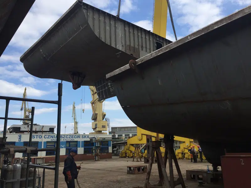 Byggefasen blev påbegyndt på værft i Polen i juni 2016, hvor selve skroget blev bygget inden det blev bugseret til Søby Værft for at blive apteret og garneret. Færgen er bygget i sektioner, der derefter blev samlet, nærmest som legoklodser (se fotos nedenfor fra maj & juni 2017). Skroget ankom til Søby d. 1. oktober 2017.