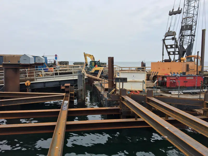 Det er Orbicon og MT Højgaard som har udført selve ombygningerne af færgelejerne. Arbejdet i Søby blev skudt i gang i juni 2017 og blev afsluttet i november måned samme år. Foruden automatiske fortøjningssystemer, ny broklap og en del andet anlægsarbejde opførtes et hus som indeholder både transformerne fra Syd Energi og Visedos konvertere. Nedenfor ses billeder fra installationsarbejdet: